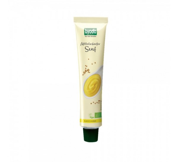 Muștar Byodo mediu în tubul practic cu conținut de 100 ml. Acest muștar are o aromă fină, picant subtil și cremozitate. Este un talent general în bucătărie. Muștarul organic are un gust excelent nu numai cu cârnați și brânză, ci și îmbogățește sosurile, supele, precum și preparatele din pește și carne.