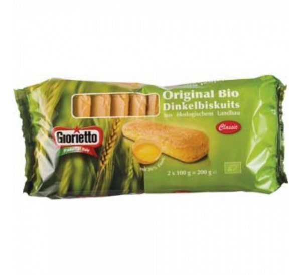 Piscoturi din spelta BIO cu ou sunt excelent pentru a prepara tiramisu si alte deserturi. Sunt mici gustări pentru timpul ceaiului. Făcut din făină de spelt, presărat cu zahăr.