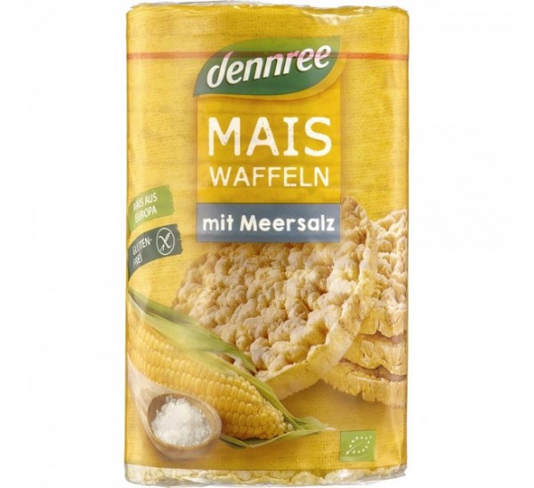 Vafele din porumb expandat cu sare de mare ofera o savoare pura. Vafele din porumb expandat cu sare de mare Dennree sunt obtinute din porumb bio de o culoare galben-aurie si asezonate cu sare de mare. Datorita procesului gentil de prelucrare, vafele din porumb sunt cu adevarat crocante, obtinandu-se astfel acel gust fin si tipic de porumb prajit. Rondelele crocante sunt ideale pentru a fi rontaite intre mese. Folosite in combinatie cu preparate picante, ele sunt o gustare delicioasa si sanatoasa.
